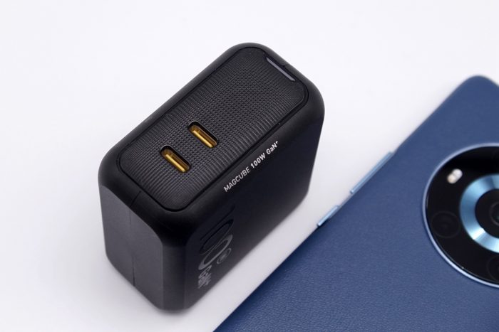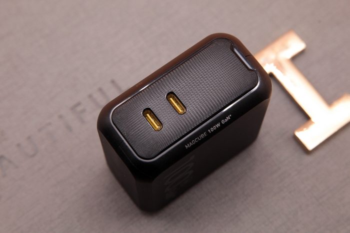 Aohi 100W双口充电器拥有两个USB-C接口,面板延续了凹凸设计,提升了充电器的整体质感,不过也有缺点,就是比较容易集灰,日常需要注意清理。