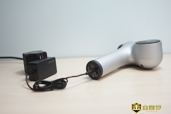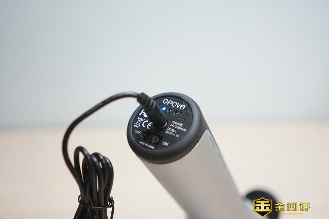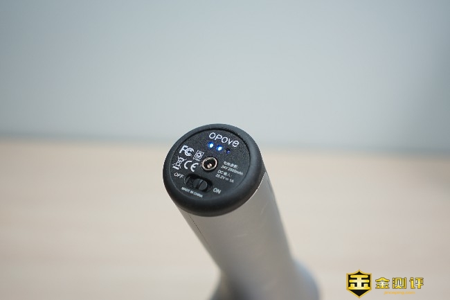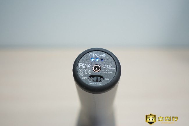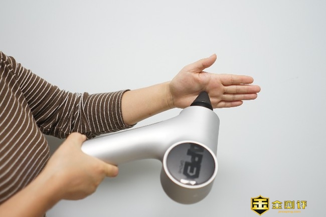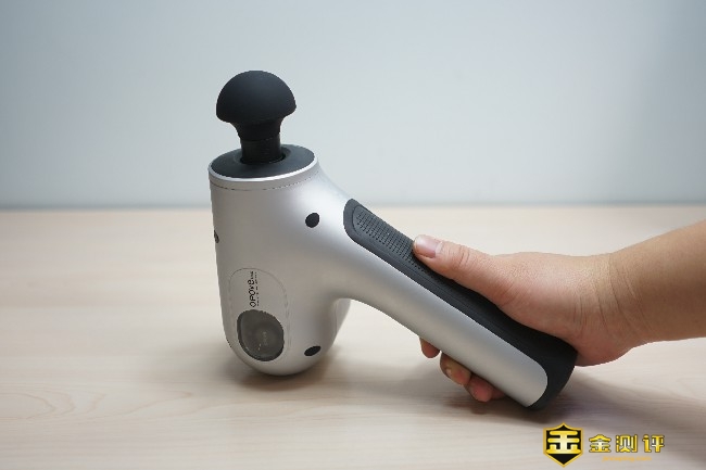 OPOVE APEX筋膜枪共有银、黑、绿3颜色选,本次体验的是银色版本,机身材质为液体硅胶树脂、工程玻璃纤维和PA,整体无论是颜值还是做工都非常有档次。 筋膜枪的尺寸为155*83*234mm,在同类产品中算是尺寸较大的,整体的重量达到了惊人的1.04公斤。机身左侧是黑色圆形品牌Logo,而且流线型机身设计更符合人体工学。 手柄底部采用了液体硅树脂材质,防滑的同时还能起到避震的作用,特别是剧烈运动后手掌会产生大量的汗渍,可以避免用户在使用过程中脱手的问题,让握感更加牢固舒适。 OPOVE APEX筋膜枪的握手处采用了人体工学角度45°设计,在使用的过程中握持更佳省力舒适,即使强烈的震动也不会轻易脱手造成筋膜枪跌落的状况。 筋膜枪的握柄非常的粗壮,握柄是直径约50mm的圆柱体,单手甚至不能全部完全覆盖。 筋膜枪设计了一个透明视窗,运行的时候可以清晰看到内部传动轴,这种展示更加直观吸引人,也非常具有潮流范儿。 筋膜枪的前端是按摩头接口,采用了内嵌式双层结构设计,对于不同按摩头的拆装非常容易,一插一转就能轻松完成拆卸。 筋膜枪前端接口处印有一行英文,通过信息可以得知这款筋膜枪的冲程约14.5mm,14.5mm的冲程可以深入到身体的组织。 握柄底部有一个按键还有三段式电量指示灯,这个按键也就是开关键,两侧印有OFF/ON标识,最中间的是圆形DC充电口,整体的设计还是非常简约的。 握柄底部的3盏电量指示灯颜色为蓝色,有常亮和闪烁两种指示状态,电量不足时会闪烁提醒用户。 筋膜枪手柄内侧分布有档位指示灯和档位切换开关,OPOVE APEX筋膜枪共有3个档位:1档为1800转速/分钟(适合热身)、2档为2200转速/分钟(适合放松肌肉)、3档为2700转速/分钟(适合深层按摩),用户可以根据个人不同的需求选择不同的档位。