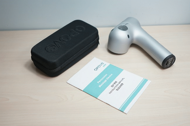 OPOVE APEX筋膜枪的包装盒以白色为背景,正面印有筋膜枪的展示图,配色为银色,左下角印有筋膜枪三大卖点:个人按摩治疗、24V无刷电机、3200RPM静音转速。 包装盒背面同样印有产品展示图,除此之外还有产品厂家信息、电池容量、适配器输入/输出参数等信息,整个包装给人清新干净的感觉。 打开包装盒首先看到的是一个黑色便携收纳包,便携收纳包印有“OPOVE”Logo,便携收纳包做工非常不错,能够保证筋膜枪以及配件的安全性,特别适合外出携带使用。 打开收纳包,收纳包上盖内侧的黑色网兜放置着说明书,还可以看到OPOVE APEX筋膜枪、按摩头的收纳包以及充电适配器摆放在里面,整体布局层次感清晰。 产品说明书采用中、英、日三语介绍,图文并茂生动形象,方便用户快速上手使用,筋膜枪作为专业级肌肉放松工具,建议详细阅读说明书然后再使用避免受伤。 适配器的体积也是比较大的,整体采用了黑色的材质呈长方形造型。整体的线长约一米采用了DC插头,适配器印有“OPOVE”品牌Logo,输出参数为25.2V1A,输入电压为100-240V,全球通用再也不用担心不同国家电压不同的问题了。