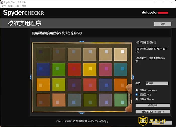 然后从LR中导入到SpyderCheckr,或是直接打开SpyderCheckr拖入这张色卡的照片,然后保存校准。