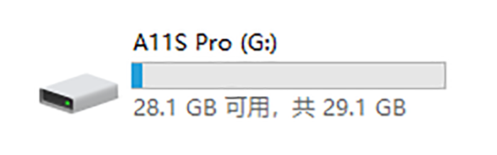 连接电脑后,实际显示存储为29.1GB,厂商预置了99收音乐,以便直接切换模式进行使用。