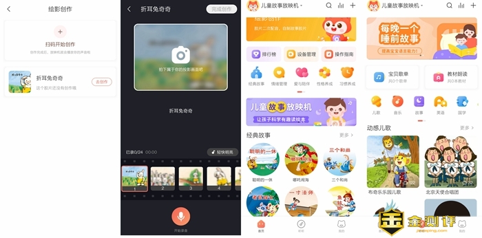除了放映胶片上面的内容之外,趣学伴儿童故事放映机还有丰富的内置资源可以播放,通过手机上的趣学伴APP,更是能够找到丰富的儿歌、故事资源,可以下载下来给孩子使用。