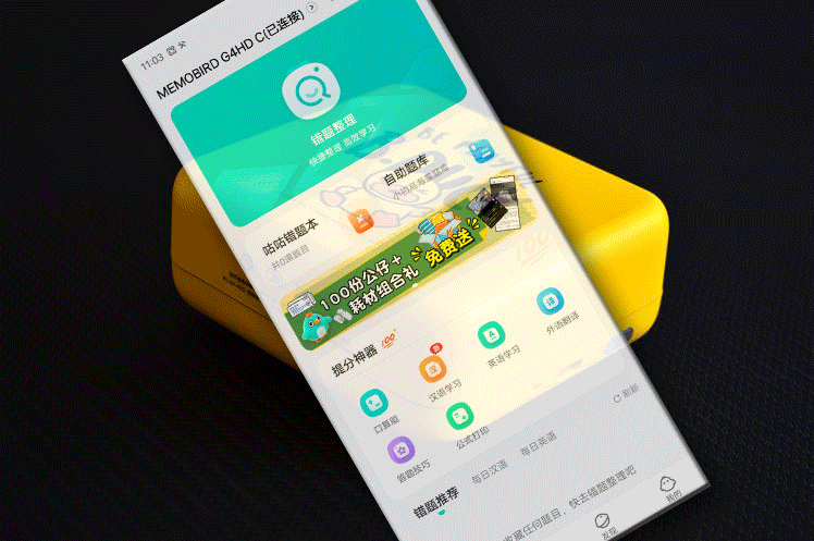 除了APP内置题库,咕咕机还可以现场打印错题。只要用手机将题目拍下来,通过识图功能扫描错题,几秒钟就打印好了,远比手抄的效率高得多,别人抄一道题,您的孩子可以做好几道了。