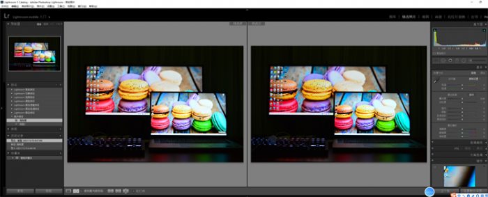 将文件保存至Lightroom,当再次打开Lightroom后,就可以看到【用户预设】选项当中保存的预设值了。在统一场景下拍摄的样张,都可以套用这个预设值,不用一张一张的去调整。我保存的是饱和度选项,可以看到对比图的马卡龙色彩明显加重,并且对高光部分进行了削弱,前后对比可以看得出不一样。