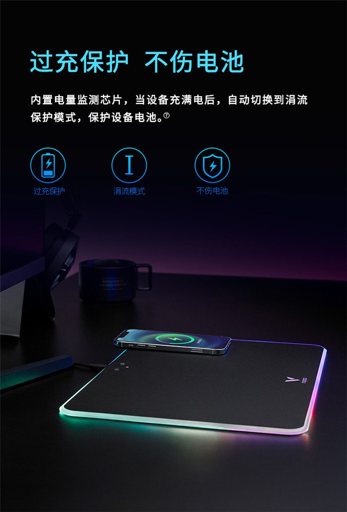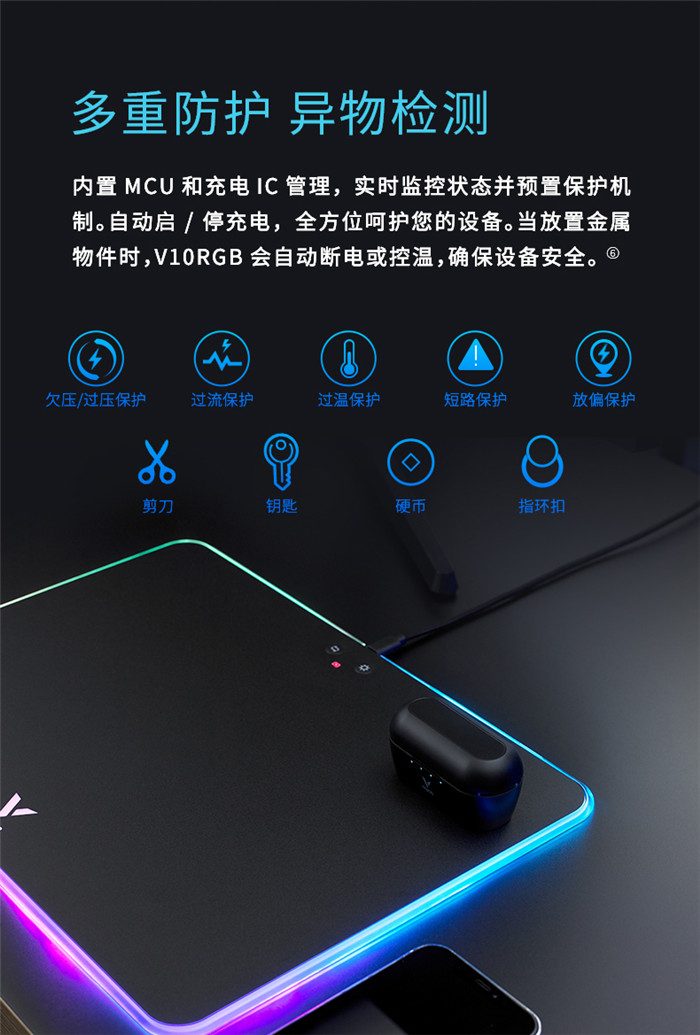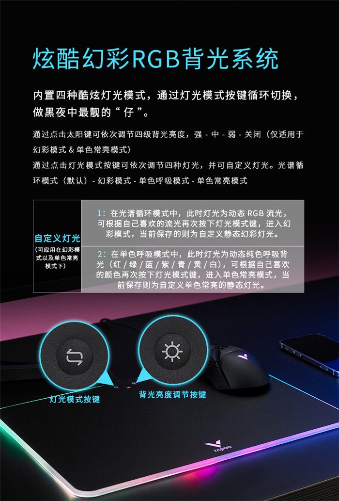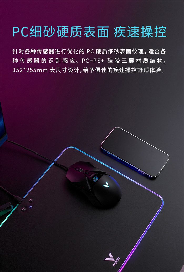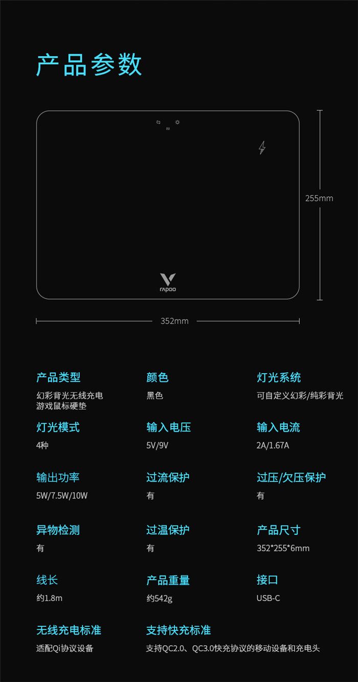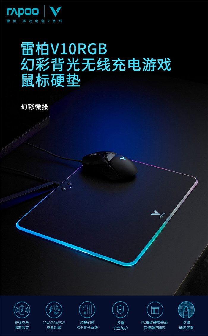 雷柏V10 RGB幻彩背光无线充电游戏鼠标硬垫(配套送鼠标) 3套 注意:文章以鼠标垫为重点,随鼠标垫附送的鼠标也要有相关体验内容