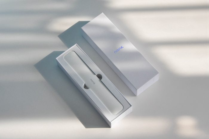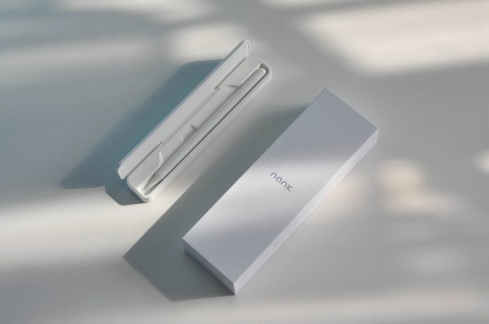 包装盒也很精致,极简的纯白色长方体礼盒设计,很浓的“苹果”味。盒子正面仅印有“NANK”字样,这个 LOGO 从不同的角度看会变色哦;两侧印着“书写流畅、细磨耐用、长续航、防误触、充电仓、磁吸充电”等功能图样,背面则是详细的制造商信息。