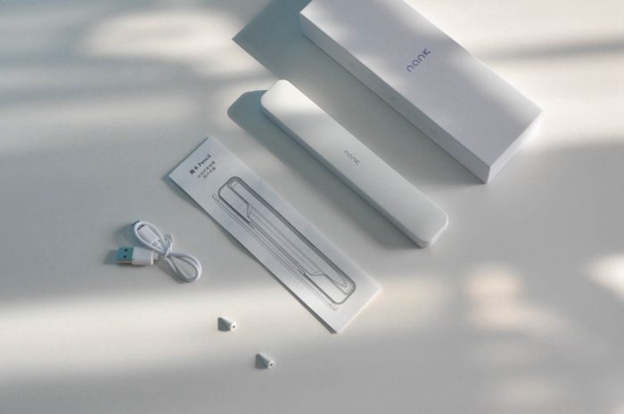 全家福来喽,包装盒内除了有一个充电仓(南卡 Pencil 主动式电容笔收纳在内)外,还有 Type-C 充电线一根,可替换笔头两个和使用说明书一份。取出笔双击顶部即可开机使用,不用的时候放入充电仓会自动吸附充电,我们可以根据指示灯状态判断是否充满,很方便。
