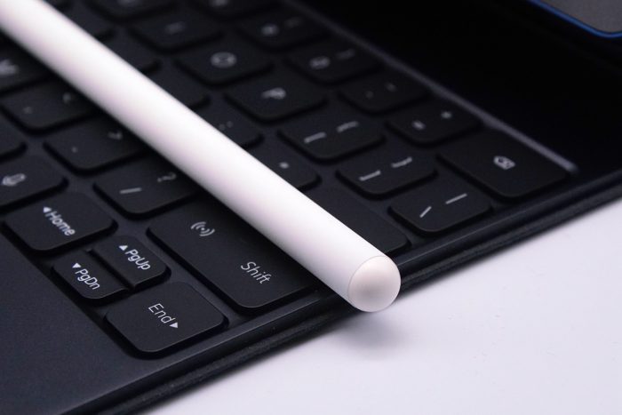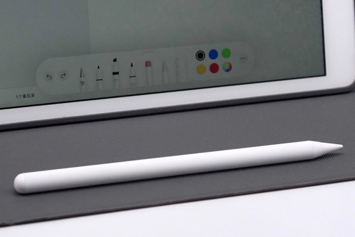 手写笔采用跟Apple pencil一样的航空铝材质,表面经过哑光磨砂处理,长度为165mm、直径9mm,重量仅有13.4g,跟普通铅笔差不多,手感舒适,长久书写也毫无压力。