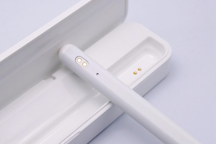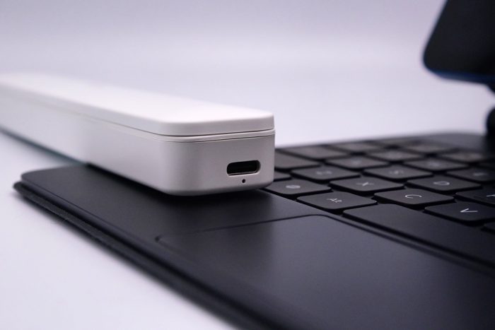 充电盒通过磁吸方式为手写笔充电,顶部拥有TypeC充电接口,可以跟安卓手机共用一根充电线,不过个人觉得,既然手写笔是iPad专用的话,充电头设计成Lightning接口会更方便。