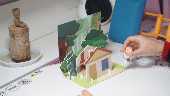 在书桌前坐的时间久了,也需要放松一下,现在来揭秘开箱看到的那个大灰狼卡片,经过对外盒的改造,可以拼搭出经典通话故事小红帽的场景,让小朋友在学习之余也能愉快的玩耍。