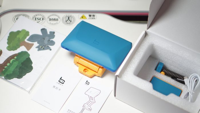 内部包装分为上下两层,所有的零部件都被安放在防震泡棉中,避免暴力运输带来的损坏。UBOT智能坐姿矫正器除了有今天的这款蓝黄配色,还有米橙色,家长们可以根据孩子的喜好自行选择。