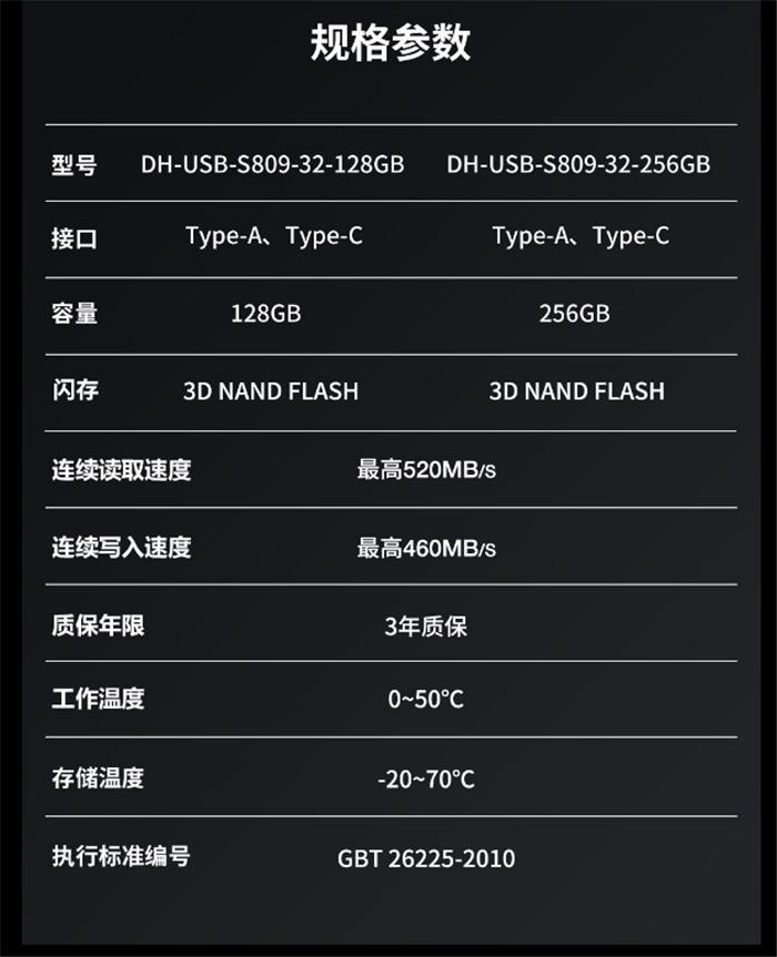 大华移动固态硬盘T70 500G、大华移动固态U盘S809系列(256G)套装 10套(每位一套) 注意: 两款产品分别产出