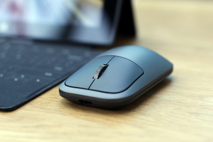 鼠标除了在底部配备了蓝牙按键与电源键以外,机身上并无多余按键,尽可能保证了日常使用的简单化。在鼠标的底部四角配备了防滑垫,在日常使用时可起到防滑作用,在皮革、布匹、纸张、木质、树脂上均可使用,为日常鼠标控制提供了便利。