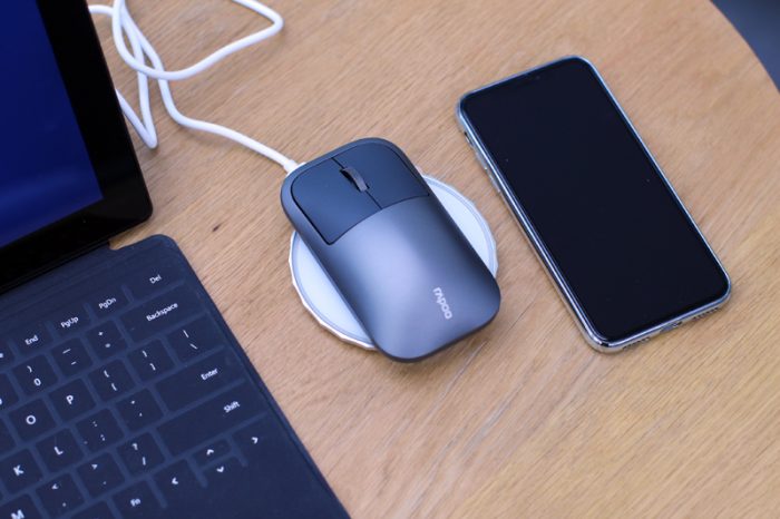 雷柏内置的电池为300mAh锂电池,最大续航20天,除了支持有线充电外,M700也支持Qi无线充电协议,配合无线充电器使用,2-3小时充满,再也不用鼠心鼠标没电了。