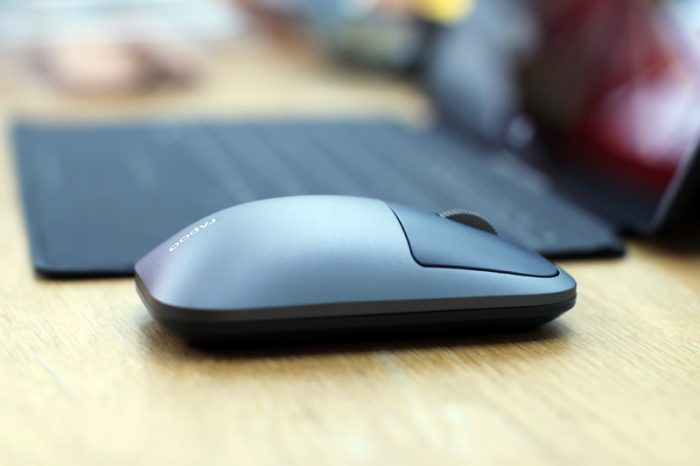 雷柏M700充电版鼠标的上盖采用的是金属材质,质感十足,金属表面经过磨砂处理,手感比较细腻,也可以很好的防止指纹与手汗的残留,使用久了也不会褪色。