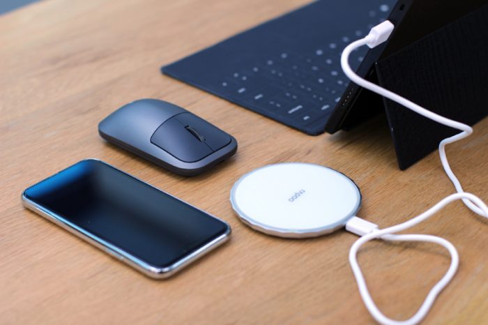 鼠标不用的时候,往无线充电器上一放,就可以自动给鼠标充电了,随时都可以保证鼠标电量充足。