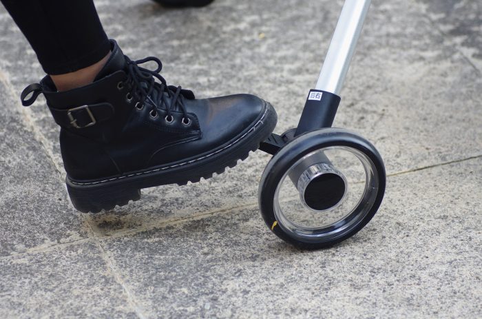 机身后背设计有一根可自由调节高度的推杆,支持三档调节,使用过程可以根据自己身高及使用习惯调整到合适的高度,完美适配身高150cm~180cm人群,不用弯腰既可推行车辆,非常人性化。而且推杆采用的是高反光材质,夜间使用更加安全。