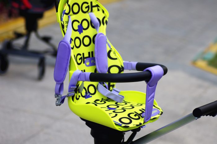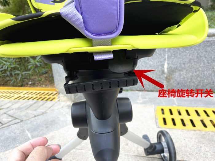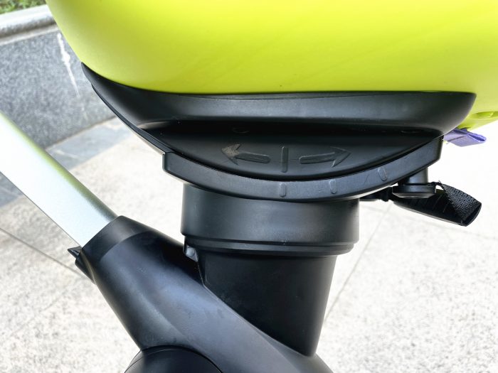 考虑到有些宝妈们喜欢在骑行过程中跟宝宝互动,COOGHI酷骑溜娃神器在座椅下方设置了一键座椅换向按钮,切换座椅面对父母,亲子互动更加方便,这个功能目前在市面上的普通儿童车是没法实现的,个人觉得还是挺新颖的,特别对一些比较怕生的小朋友来说是很有必要的,面对父母骑行,能给宝宝带来更多安全感。