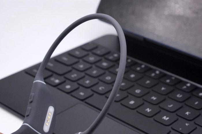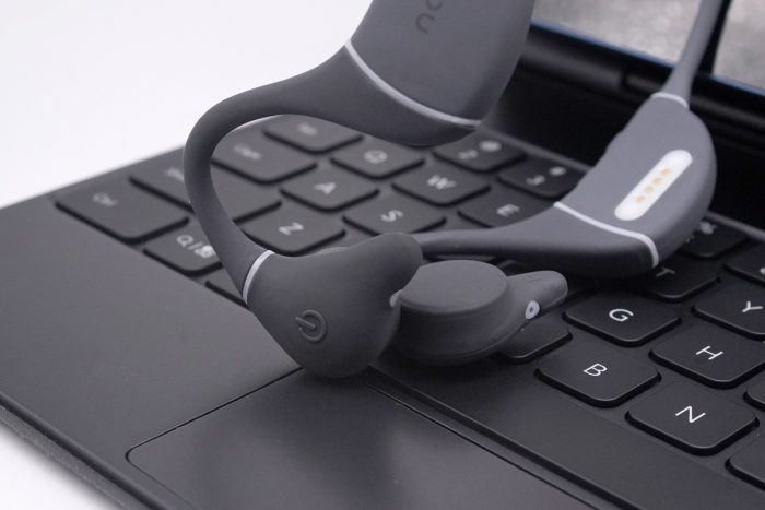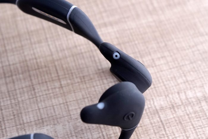 南卡Runner Pro3后挂依然采用柔性的记忆钛合金材质,弹性非常好,随意弯折也能恢复如初。表面为亲肤硅胶材质,手感顺滑、佩戴轻盈舒适。