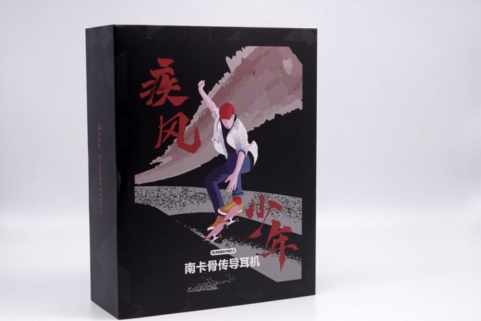 南卡Runner Pro3的外包装加入了更多时尚元素,正面疾风少年的形象更加具体化,背面则印有产品的图案以及参数信息。