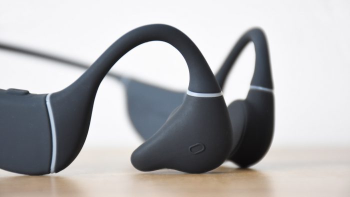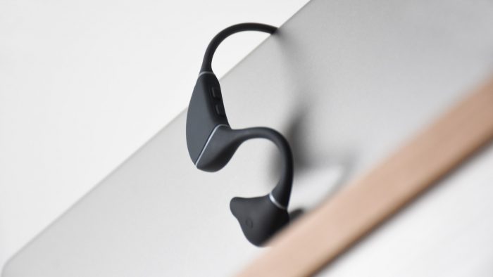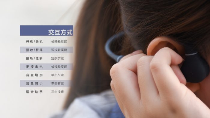 骨传导模块也由之前的圆形改成不规则造型,向后方延伸出一段小尖尖,主要作用是增加佩戴稳定性。此外,左侧骨传导模块外侧设计有实体电源键,按键阻尼稍大一些;右侧骨传导模块外侧镶嵌有NFC模块,便于和手机实现靠近配对,在后面的体验环节会详细讲到。