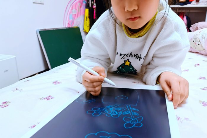 对于龙哥来说,小米米家液晶小黑板存储版主要是给孩子使用,小黑板中间部分采用定制液晶膜配方,无蓝光液晶屏,还具有超高的分辨率,清晰可见,长时间使用也不会感到疲劳,无尘不伤眼,书写呈现蓝绿色笔迹,清晰醒目,而且鲜艳的颜色也比较容易孩子的兴趣和吸引力。孩子们则可以在黑板之上发挥自己的想象力,描绘属于他们的童年时光。