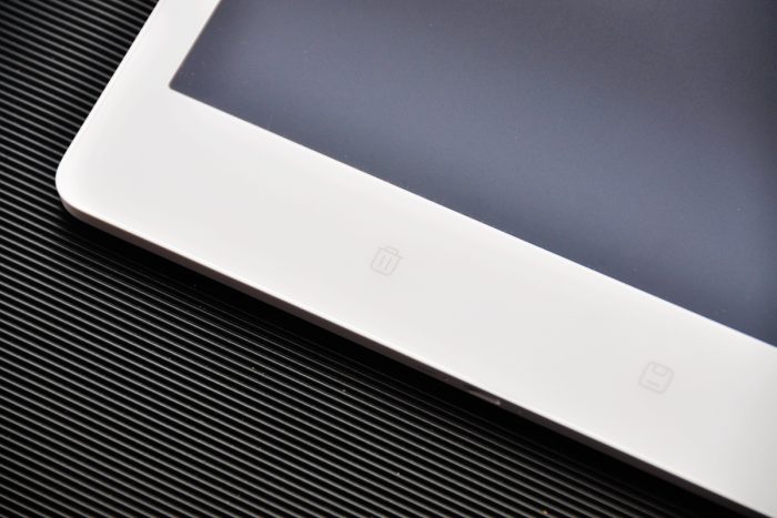 这款小米米家液晶小黑板存储版以白色作为主色调,正面大部分空间为液晶屏幕,这款液晶屏并不发光,它的光写特性与纸张是相同的。即使长时间使用这块无蓝光的液晶屏,让眼睛也不易疲劳。压感书写的方式,无尘无墨,相比传统的小黑板,在安全性和卫生上都有着显著地提升。