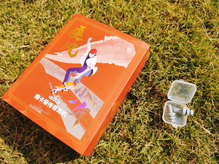 然后看看开箱吧!南卡这一点上做的挺好的,每一代的耳机外观都如出一辙,主图就是一个滑板男孩的酷炫的样子,就是主色调变一下。打开是一个常规的硬塑黑色盒子,上面是南卡的字样。打开就是定型盒,耳机固定在上面。然后配件——说明书、充电线、以及一对耳塞。