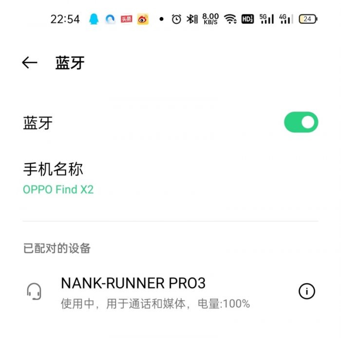 内置蓝牙5.2,是目前市面上最高配置的芯片了,所以传输性能让人满意,速度超快、链接超稳定。第一次链接的时候操作非常方便,基本手机不用搜索,即时就能找到Runner Pro 3,然后进行秒链接。速度真是超快,就喜欢这种不费吹灰之力的链接方式,比那种傻乎乎半天连不上让我窝火的不知道好多少!打电话、看电影也是,到处乱走也不会信号忽有忽无,穿墙表现也良好。