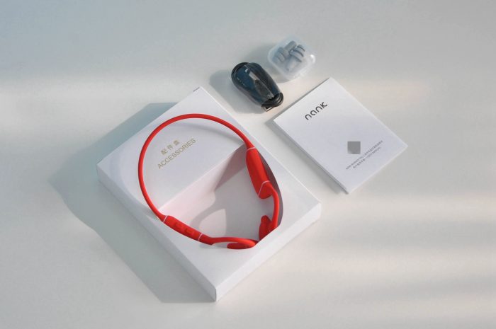 礼盒内部采用了“凹”型槽双层设计,上层收纳着南卡 Runner Pro 3 骨传导蓝牙耳机,下层则是一根磁吸充电线,一盒超精致的灰色耳塞和一份使用说明书,初次使用的话建议大家认真看一遍说明书哈。