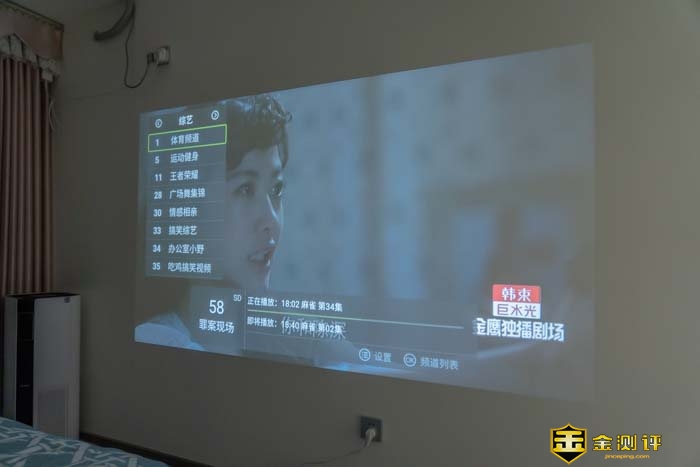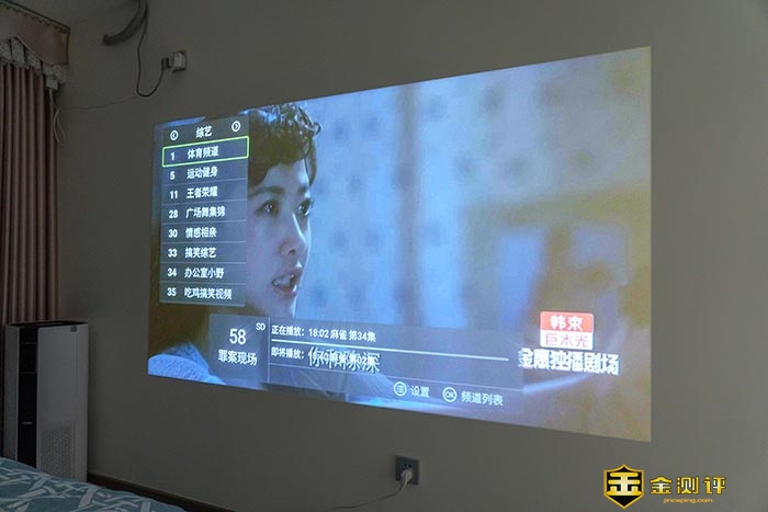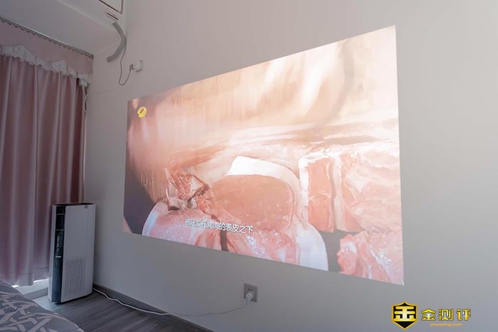 100英寸的1080P的画面可以说是又大又清晰,虽然比小电影院的效果,但在卧室,能有这效果也是极爽的事呀。电视里面的人和我一样的大,身临其境的真实感还是有的。