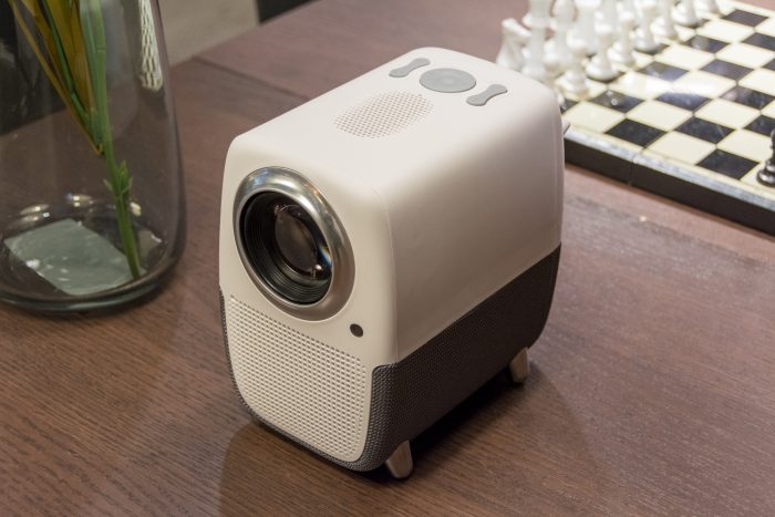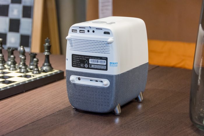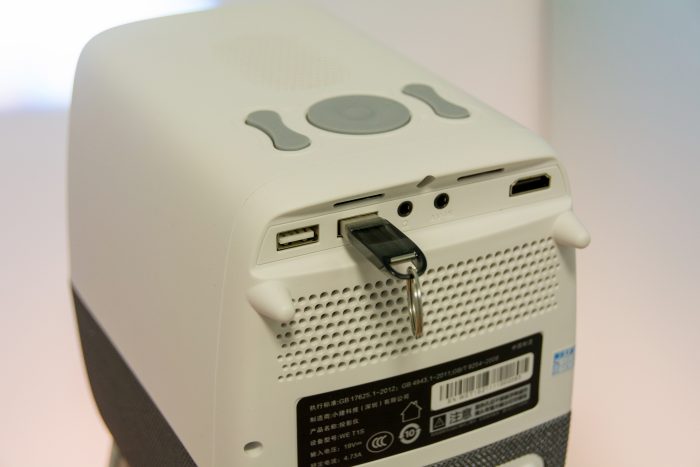 迫不及待的先展示一下WEBOX T1S的外观,投影仪的三围尺寸为255x 235x189mm,整机重量约1.9KG,体积是非常的小巧,可以很方便的移动,平时换不同地方或是外出携带使用都没问题,而且收纳起来也不占地方。以后宝宝去奶奶家、外婆家住也能带上它,随时随地的看大屏动画片了。