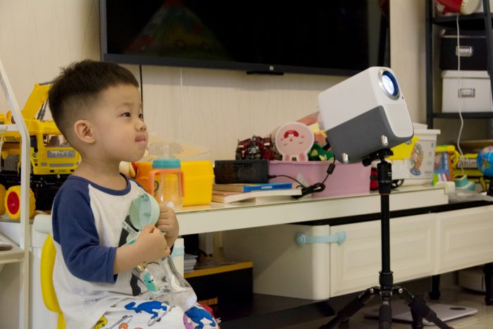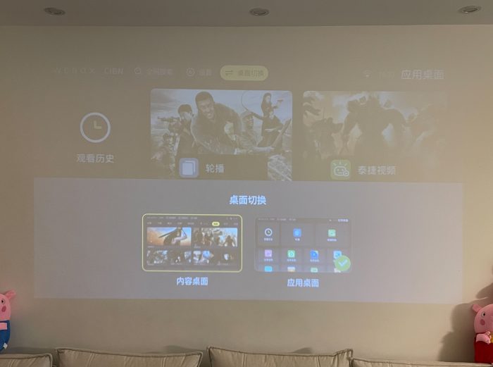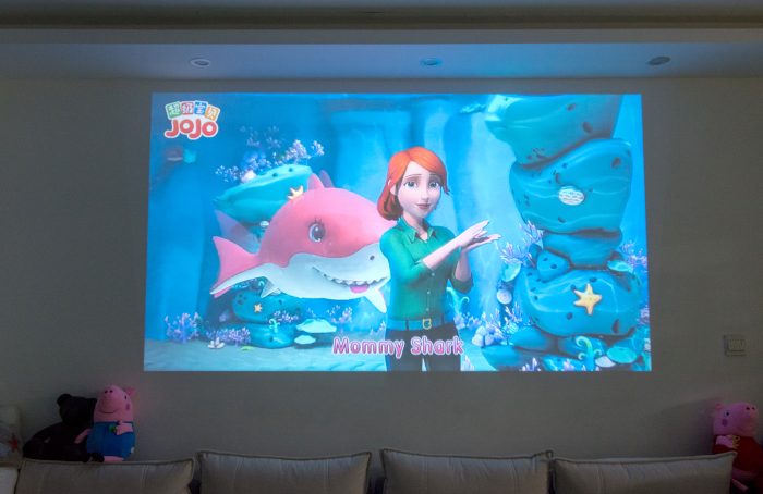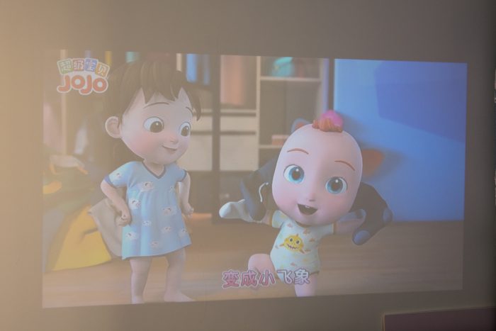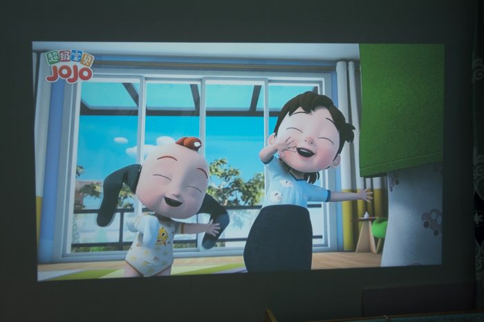考虑到平时主要是给宝宝看动画片用,太过暗的环境下可能也不健康,所以在观看时,我还是会打开灯带作为辅助光,只要光线不是照射到背景墙上,投影画质不会有明显衰减,同时起到保护宝宝视力的发育,家长也能可以放心的让宝宝看动画片了。