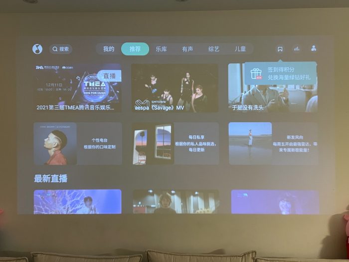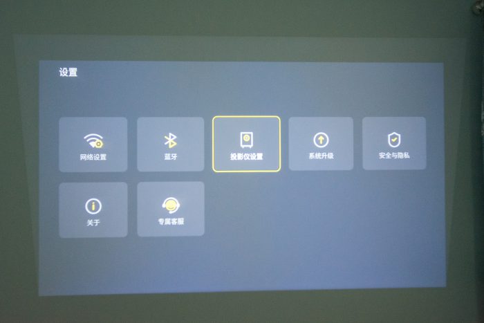 在刚上手使用时,需要对投影仪进行对焦,通过遥控器或机身上方的对焦按键,可以快速完成对焦操作,系统自带辅助对焦环,能快速完成微调,实测还是很快速的。另外,内置的电子变焦,当画面过大或过小时都可以调整,来达到满墙的投屏,家庭影院的效果。