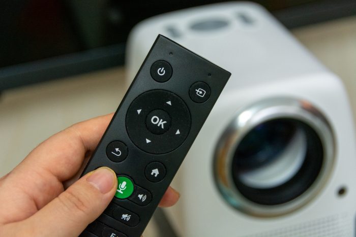 在说下标配的遥控器,细长的黑色机身,入手感相对舒服。采用了16键的布局,有圆形导航键、音量等按键,独立的语音按键,支持人机交互,能更快捷的找到想看的片源。