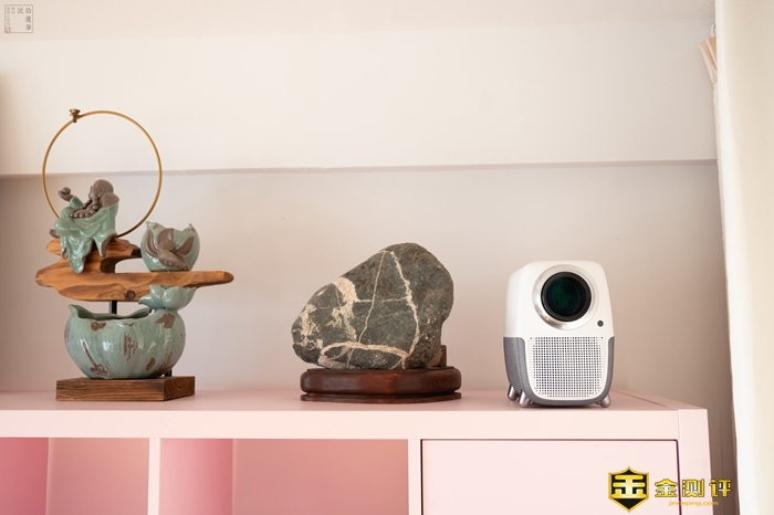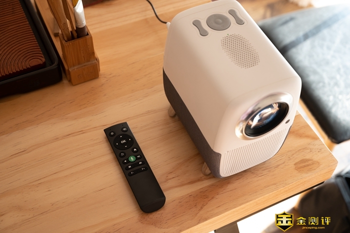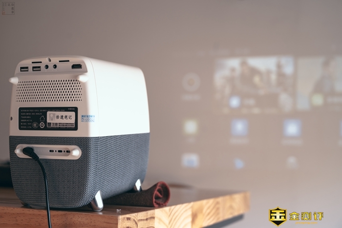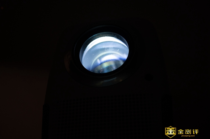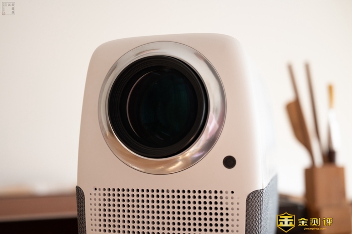 WEBOX T1S镜头上的这块大玻璃实在过于显眼,比同价位的产品配置更加扎实,不仅用的是进口大口径加厚玻璃,而且经过了全镀膜处理,因为有着耐磨耐腐蚀、高硬度的特性,所以使用寿命相对也更长一些,此外它投射的画面色彩还有更高的还原度,画面质感表现出色。
