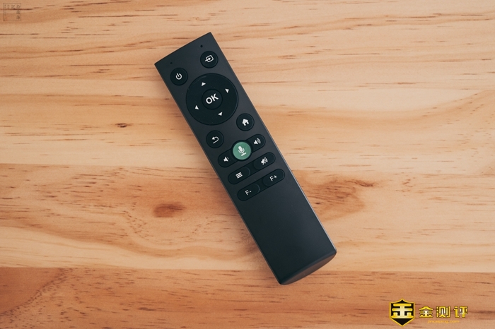 WEBOX T1S的遥控做得非常简单,但是按键非常全面,信号选择、音量调整、对焦设置都可以一键搞定,并且上面还配备了语音按键,可以通过语音来实现常用操作,使用中比普通的红外遥控更加快捷。