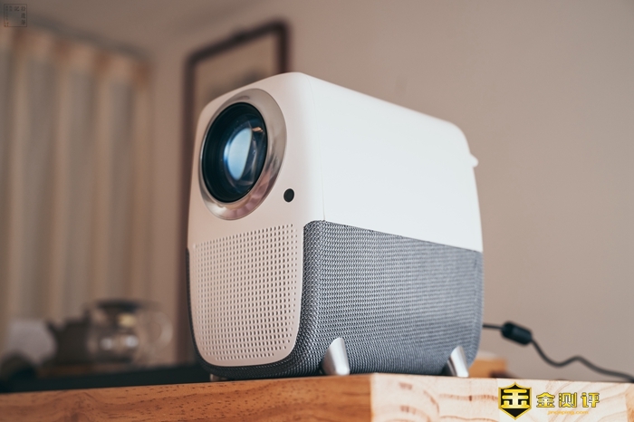 众所周知,投影仪最重要的元件就是镜头和灯泡,WEBOX T1S在这方面的配置比较强,并且设计也很好看,正面就是一只大大的眼镜,机身则是白灰色混搭,科技感十足,而且细节做工很出色。相比商用或者同价位的产品,WEBOX T1S很好地把握了体积和形态的平衡,造型很漂亮,同时整体很轻巧,放在家里也是个很好看的装饰。