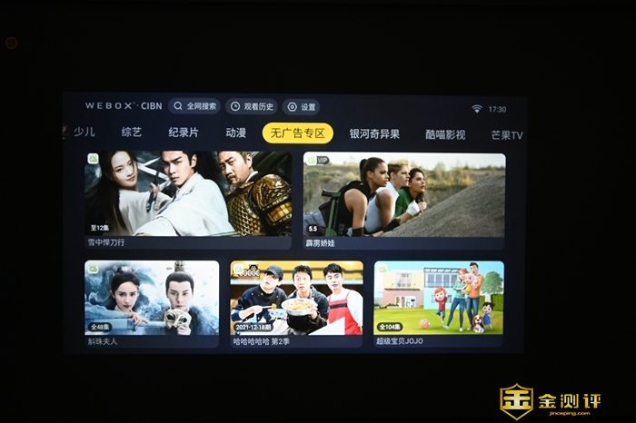 最近我主要用WEBOX T1S来看一些在线以及本地的视频内容,我感觉WEBOX T1S的在线播放画质很细腻,并且十分流畅,没遇到过卡顿问题。相信多数朋友都喜欢在晚上看各种影视内容,而WEBOX T1S在开灯的情况下,也可以带来非常不错的播放效果,在色彩方面,凭借出色的硬件配置,以及数字聚焦优化技术的加持,WEBOX T1S的还原表现确实很让人满意,没有偏色之类的问题,在一些明暗画面过渡的场景中,WEBOX T1S同样可以轻松表现出来,过渡效果十分自然,我们在日常使用中不需要额外调校参数,开机就可以获得非常令人满意的画面表现。