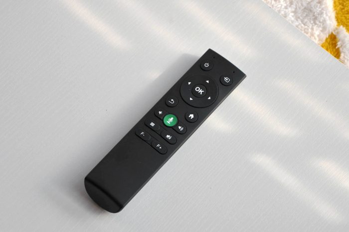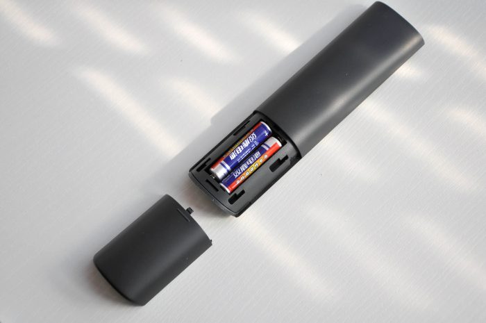 先来看看标配的 AI 语音蓝牙遥控器吧,极简的按键设计包含了投影仪的所有控制方法。遥控器采用了黑色极简设计,功能按键分区合理。第一行麦克风、指示灯;第二行电源键、输入模式设置键;第三行方向键和确认键;第四行返回和主页键;第五行音量加减和语音助手键;第六行菜单和静音/梯形切换键;第七行镜头调焦加减键。续航方面采用了两节7号电池供电,你家的遥控器一般要多久换一次电池呢?