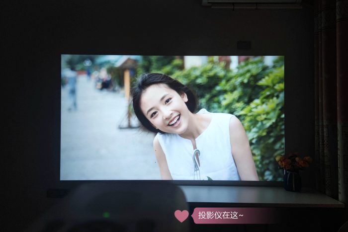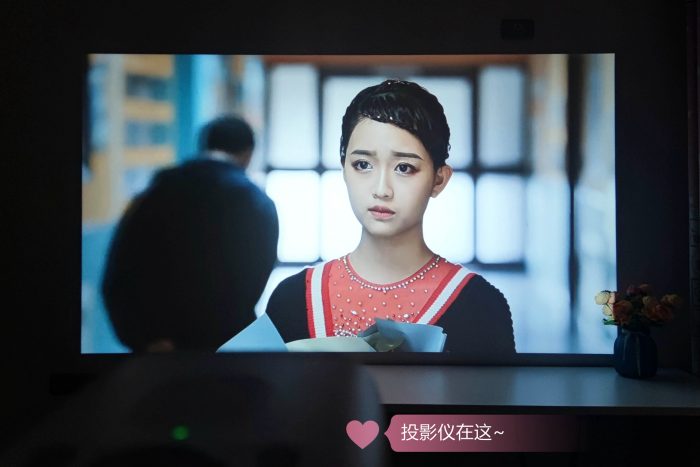 这两张是媳妇追剧时的实拍图,这清晰度和色彩也完全够用了。确实是泰捷 WEBOX T1S 投影仪的实拍哈,投影仪使用三脚架固定,然后手持手机抓拍,看到桌面上的花了吗,角上的光就是投影仪所投射出来的。通过体验,我觉得泰捷 WEBOX T1S 投影仪的表现绝对能俘获你的芳心,无论是白天拉着窗帘用,还是晚上熄灯用,画面表现清晰锐利,亮部不失真,暗部细节到位,音质也很出色,不管你是想在家追剧还是看电影,都是很不错的选择。