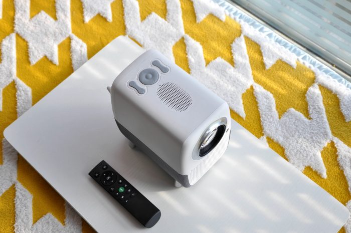 我挺喜欢泰捷 WEBOX T1S 投影仪的“大眼睛”造型,呆萌可爱。这款投影仪延续了泰捷一贯的高水准设计风格,它的整体尺寸并不大,三围分别为长255 mm×宽235 mm×高89 mm,重约1.88 ㎏。白+灰配色简约干练,更易融入你的家装环境,摆哪都好看。