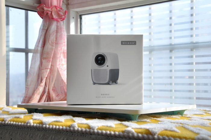 泰捷 WEBOX T1S 投影仪的包装设计还是非常精致的,外层瓦楞纸箱+精致礼盒+内部泡沫棉三重防护,足以保障产品在运输中的安全性。纯白色的礼盒设计很漂亮,作为乔迁礼送朋友也是不错的选择。箱子正面印有品牌 LOGO、产品图样和特色功能字样,辨识度很高。两侧分别印着参数信息和场景实拍图,看它精致的样子还挺漂亮的。