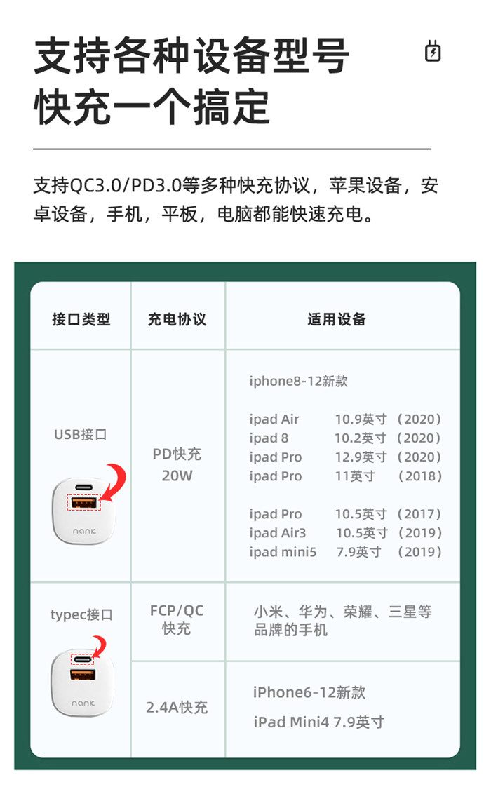 Nank南卡充电头C2南卡20W双口PD快充充电器 10台