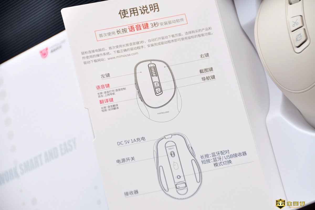 打开包装后,还有一层扉页设计,带有咪鼠科技的LOGO,背面是简易的使用说明书。