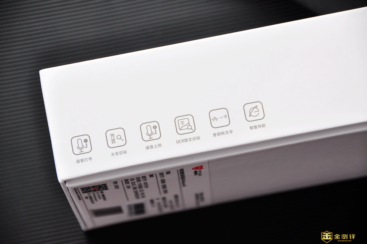 包装侧面是产品的特色设计,诸如语音打字、方言识别,语音上网、OCR图文识别、音频转文字、智慧导航等功能,可谓是科技元素满满。