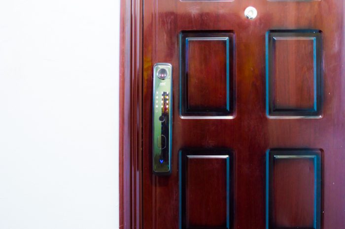 门锁支持虚位密码,只要在输入的20位数字当中,有正确的密码,门就会打开。这样在旁边有人的时候,你也可以大方的输入密码。