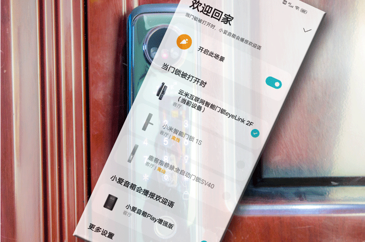 更丰富的设置是在米家APP当中完成的,在APP当中可以添加用户的人脸、指纹等解锁信息,查询开锁和报警记录。此外APP还能进行授权临时密码、设置智能场景等操作,智能场景模式用如果——就执行——的格式来完成。比如如果打开门、就开灯;如果有人开锁,就向手机发送通知等。当然还能进行固件升级。