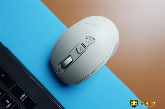 这个蓝牙双模连接不得不说,这个功能可以实现一个鼠标实现两台电脑之间的切换操作使用,实际的使用上特别的简单,一台电脑使用接收器模式连接,另外一台电脑使用蓝牙模式连接,然后切换操作上,只需要按一下底部的切换键就可以在两台电脑上进行切换操作了,这个对于办公人群使用非常的友好。