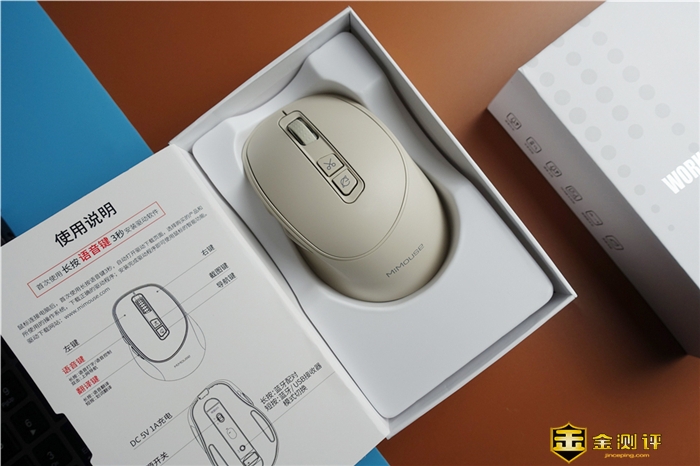 当打开包装盒之后,可以看到产品被包裹的非常好,这样能够保证产品在其运输过程中的安全,从配件方面来看,主要有鼠标,接收器,充电线,使用说明书。
